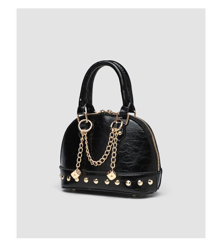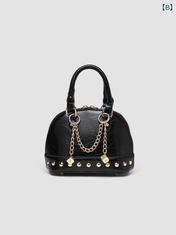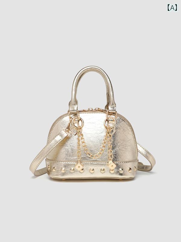 バッグ レディース シェル型 ハンドバッグ 肩掛け 斜め掛け チェーンストラップ ミニポーチ 合成皮革 ファスナー開閉 内側ファスナーポケット やや硬め ゴールド ブラック 春夏 デイリーユース