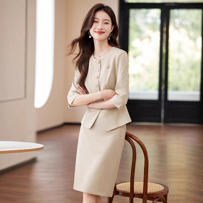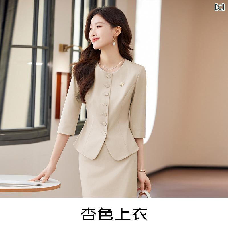 セットアップ レディース 七分袖 ジャケット スカート 春夏 ビジネス オフィス 通勤 事務服 フォーマル セレモニー 上品 エレガント スリムフィット ポリエステル 形態安定 シワになりにくい 着回し