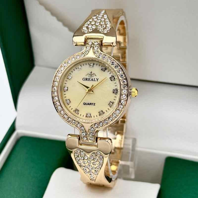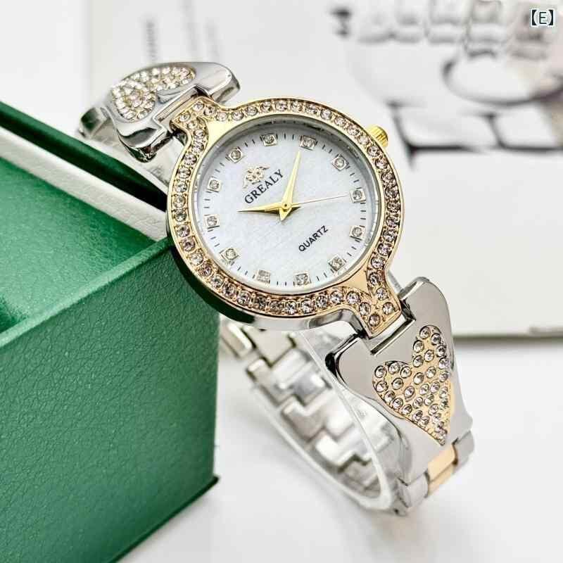 腕時計 レディース ハート ジルコニア ファッション おしゃれ ラウンドフェイス シェル文字盤 パール クォーツ 薄型 小さめ ミネラルガラス 合金製 ジュエリーバックル 秋 ゴールド