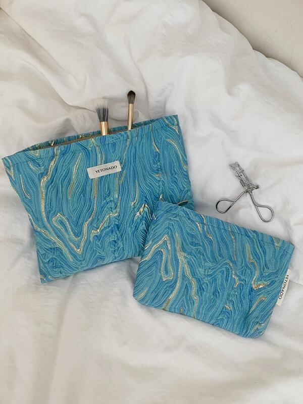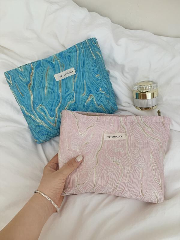 コスメポーチ レディース 大容量 エンボス加工 スキンケア 洗面 トラベル 収納 携帯用 インナーバッグ 普段使い ポリエステル 油絵風 ゴールドライン