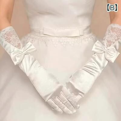グローブ レディース ウェディング ブライダル 結婚式 披露宴 フォーマル ロング丈 フルフィンガー サテン レース 白 ホワイト エレガント 上品 韓国スタイル