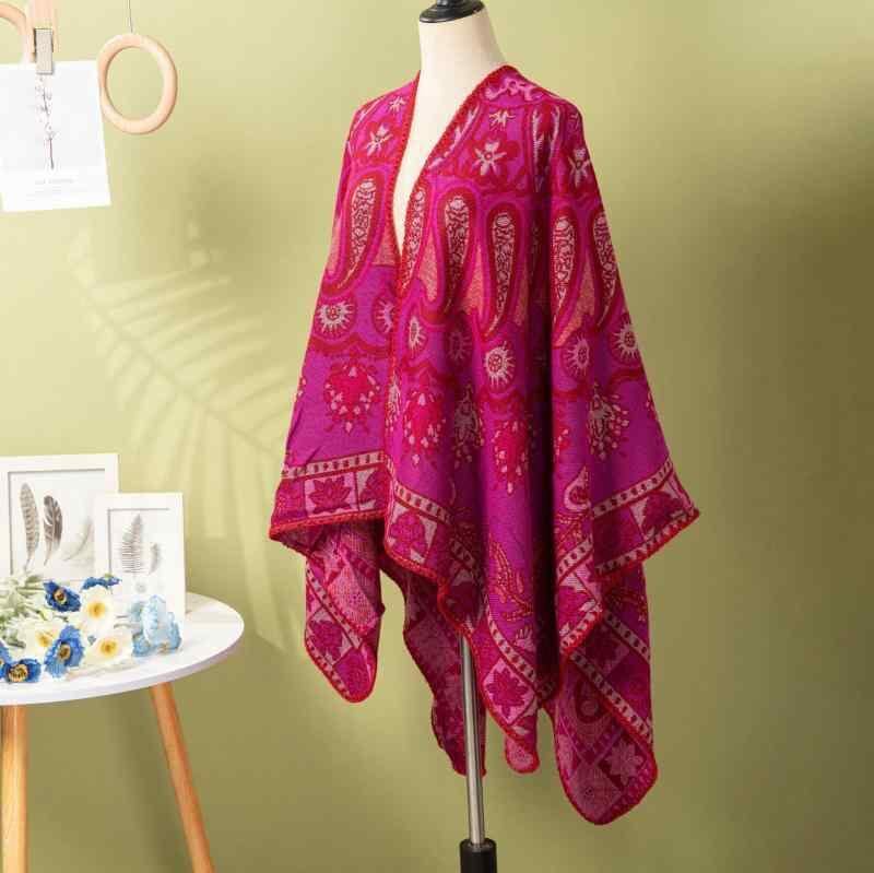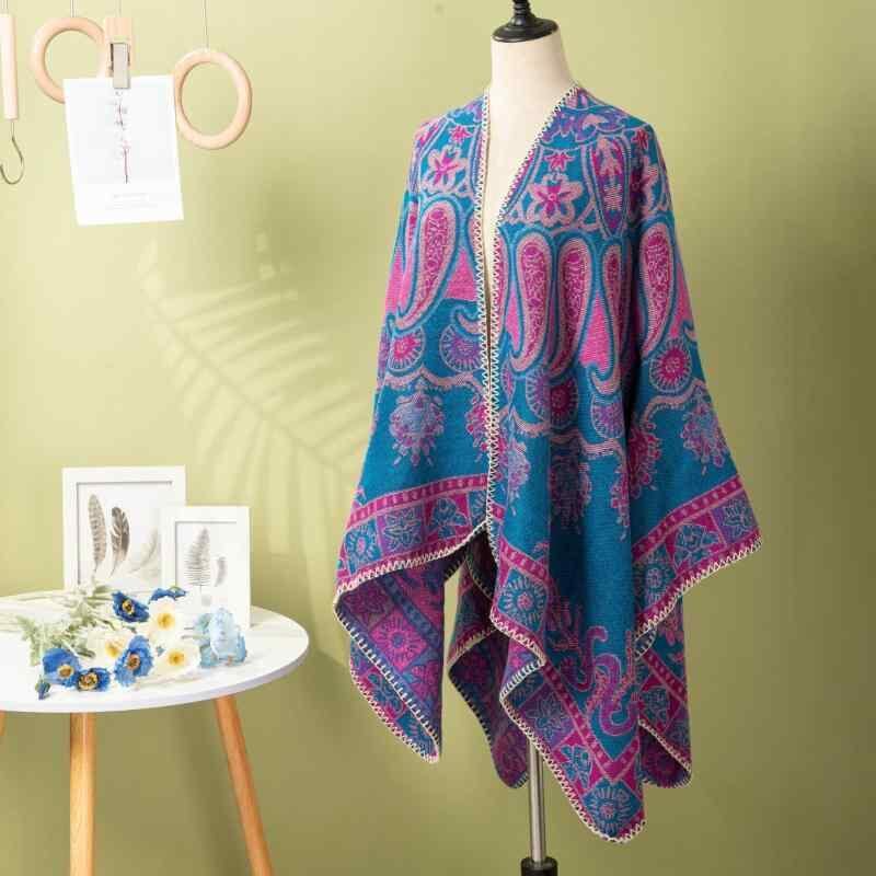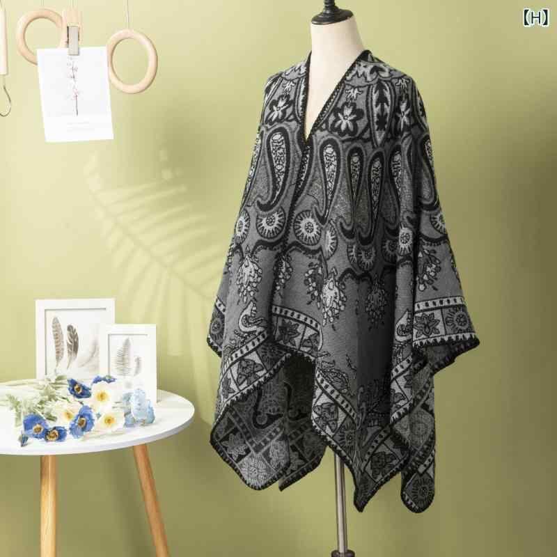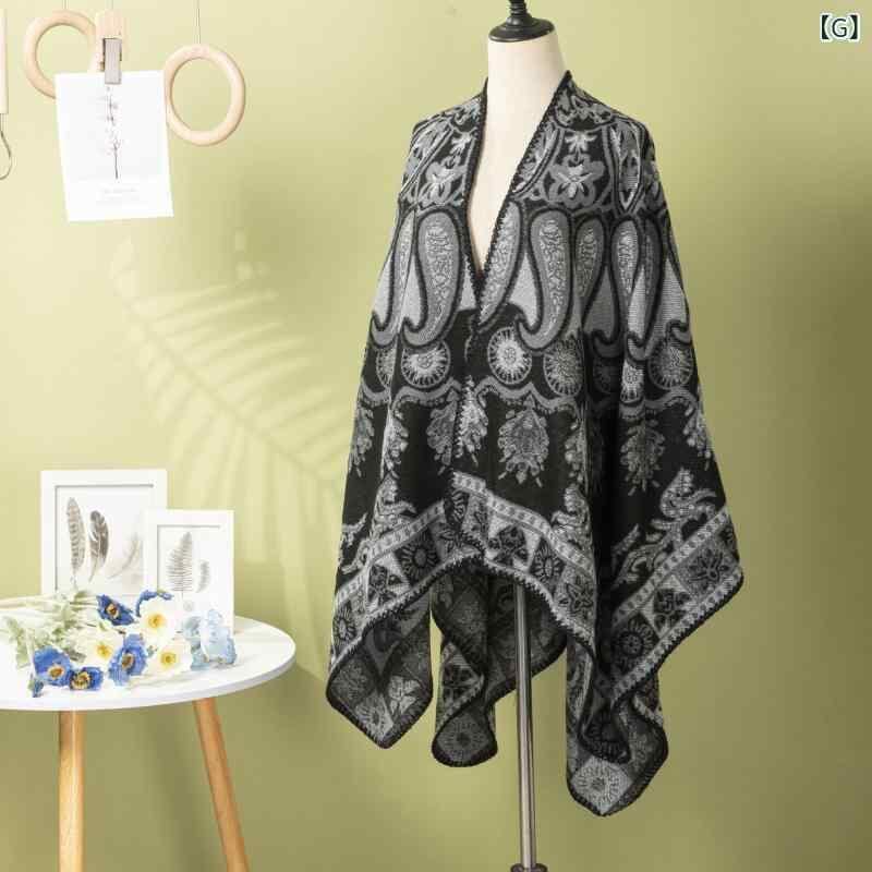 ショール レディース 秋冬 カーディガン ストール ケープ ペイズリー柄 スリット入り レトロ 欧米風 厚手 保温 防寒 ポリエステル アクリル混紡 普段使い