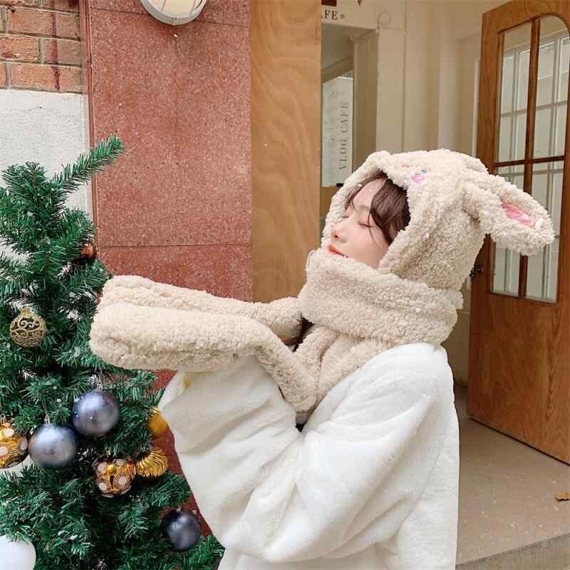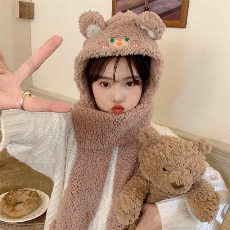 帽子 手袋 マフラー 一体型 レディース キッズ 学生用 冬用 防寒 暖かい 厚手 防風 フェイクファー ボア かわいい クマデザイン 自転車 通学 アウトドア