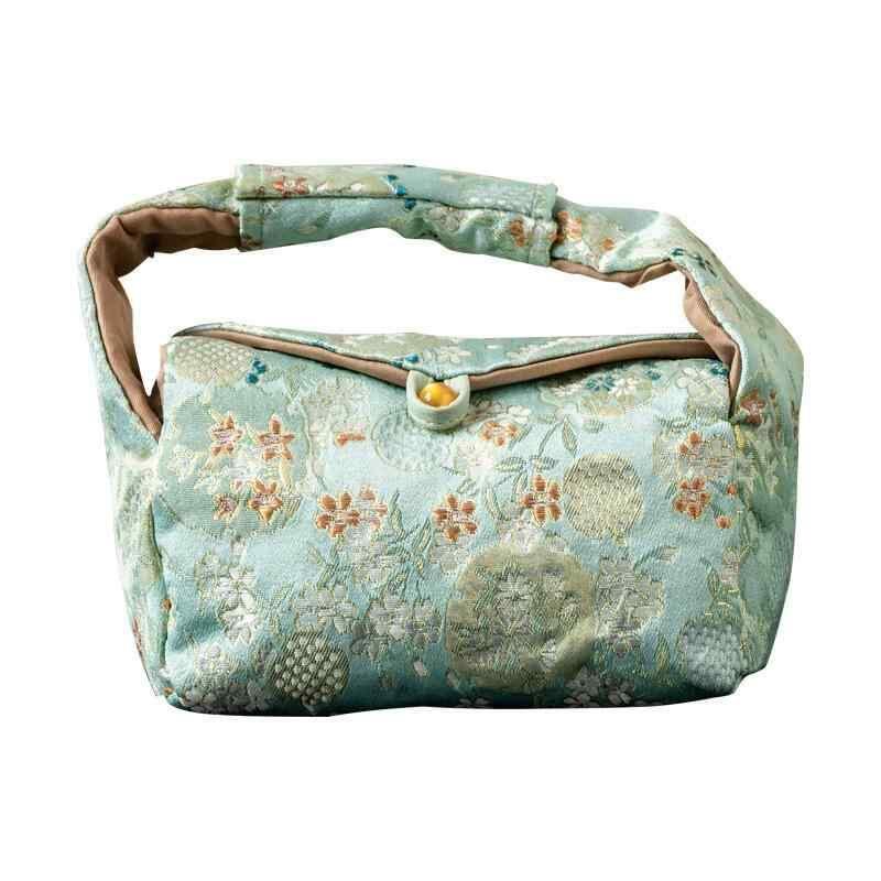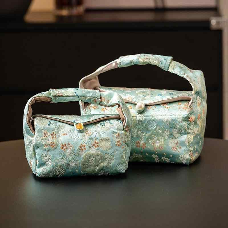 ポーチ レディース 緑色 石竹花柄 織錦 上品な 新中式スタイル 茶器 茶道具 収納ケース 携帯用 コンパクト 旅行用 アウトドア お出かけ