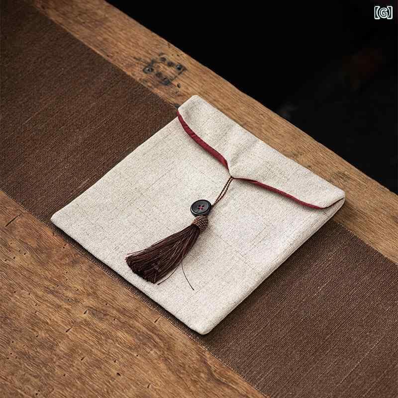 茶餅ケース プーアル茶餅用 綿麻 布製 フラップ式 ハンドメイド ボタン留め 携帯用 ポータブル お茶会 贈答用 和風 モダン おしゃれ