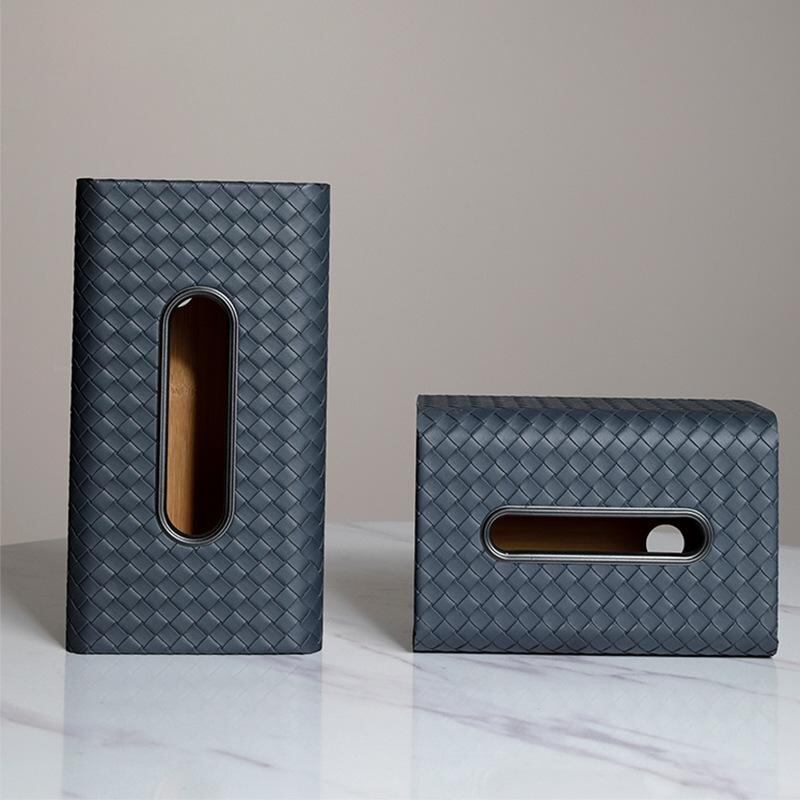 ティッシュケース モダン シンプル ライトラグジュアリー 高級感 木製 レザー 合皮 編み込み 卓上 リビング デスク ダイニング オフィス 車内 多機能 収納 オブジェ 飾り ミルキーホワイト ブルー グリーン ゴールド金具
