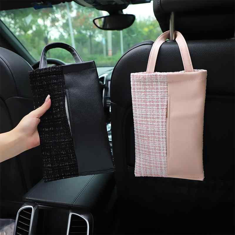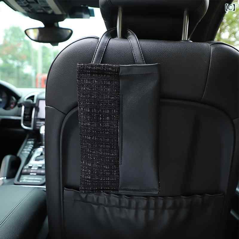 ティッシュケース 車載 シート背面 吊り下げ式 レザー 合皮 高級感 おしゃれ カーアクセサリー 車内小物 ピンク ベージュ ブラック