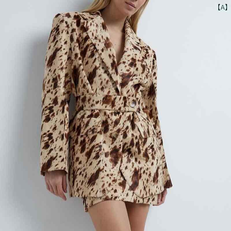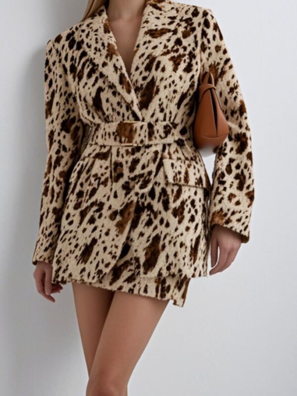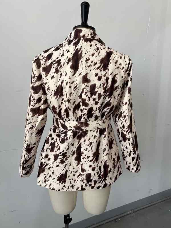 ジャケット レディース ブラウン ヒョウ柄プリント 長袖 Vネック ゆったり テーラードジャケット きれいめ 上品 エレガント ウエストマーク 通勤 オフィス ビジネス ポリエステル 秋冬