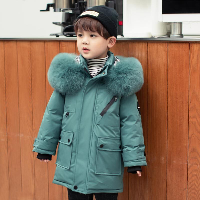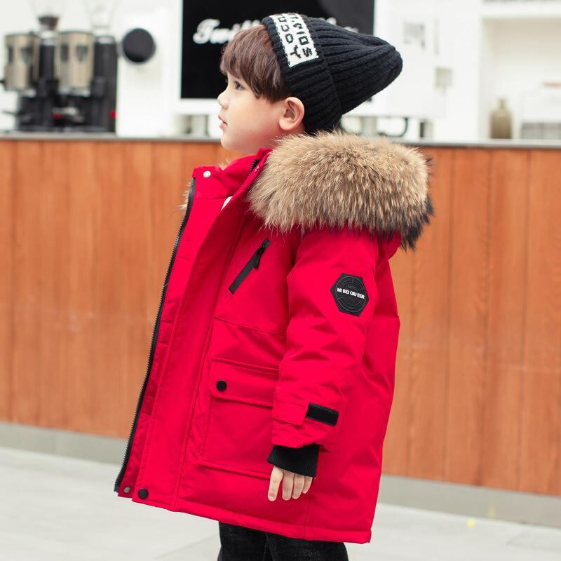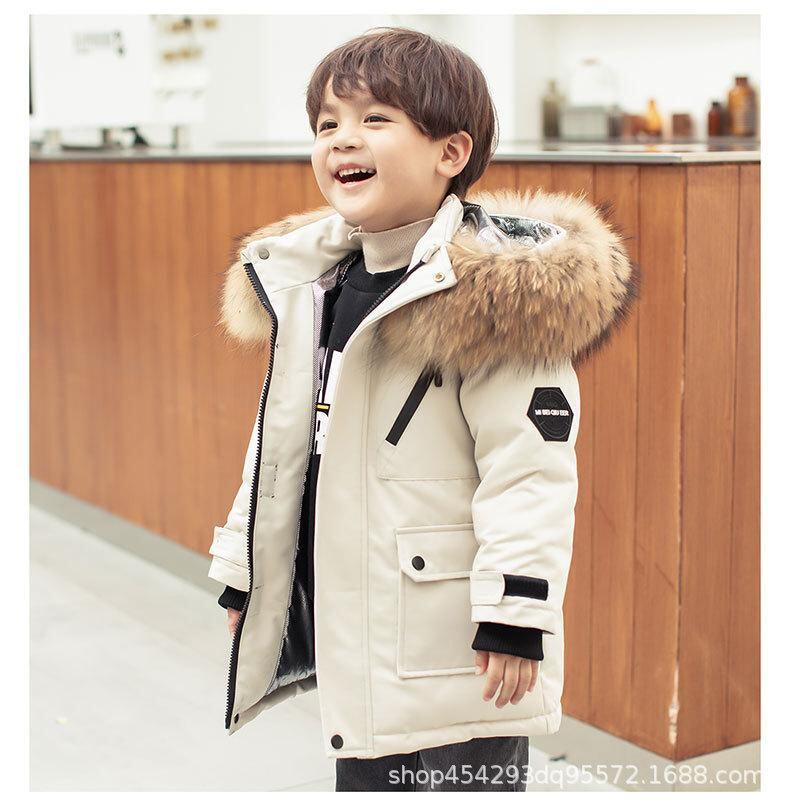ダウンジャケット 男の子 キッズ 子供 ミドル丈 ゆったり 厚手 冬 防寒 保温 フード付き ファー襟 アウター 韓国風 おしゃれ 通学 普段使い カジュアル