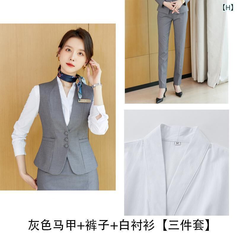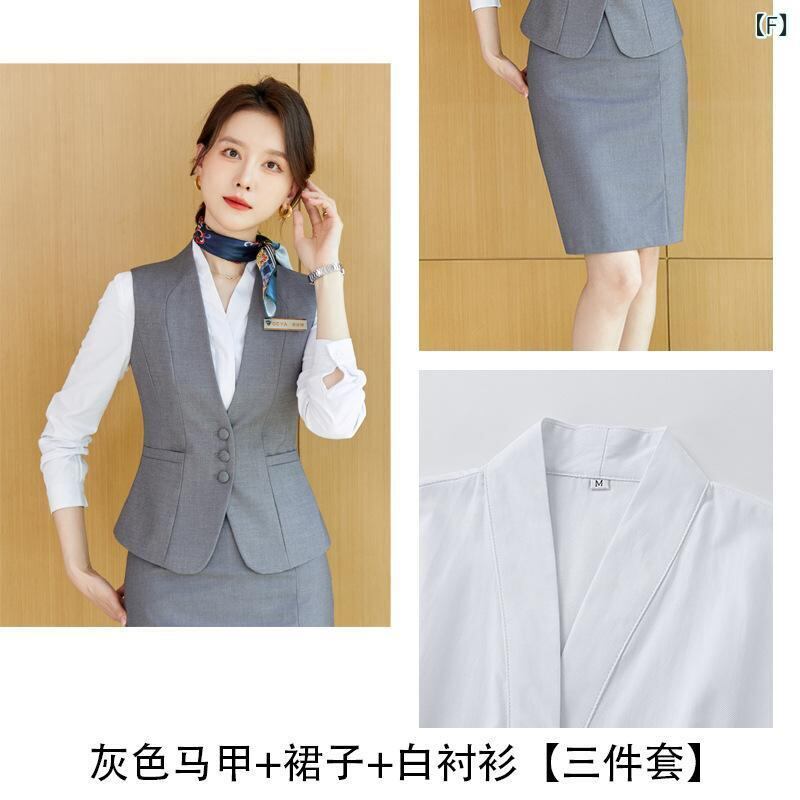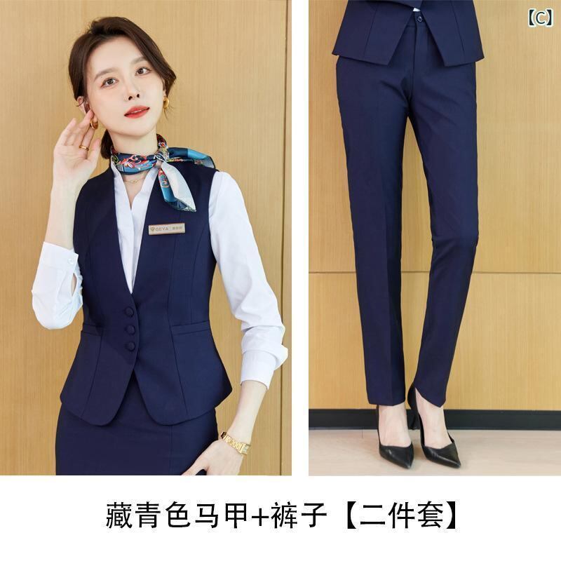スーツ レディース 高級感 ビジネス オフィス フォーマル 制服 ユニフォーム セットアップ ベスト ジレ ホテル 宝飾店 フロント 受付 マネージャー 役職者 ポリエステル 再生繊維