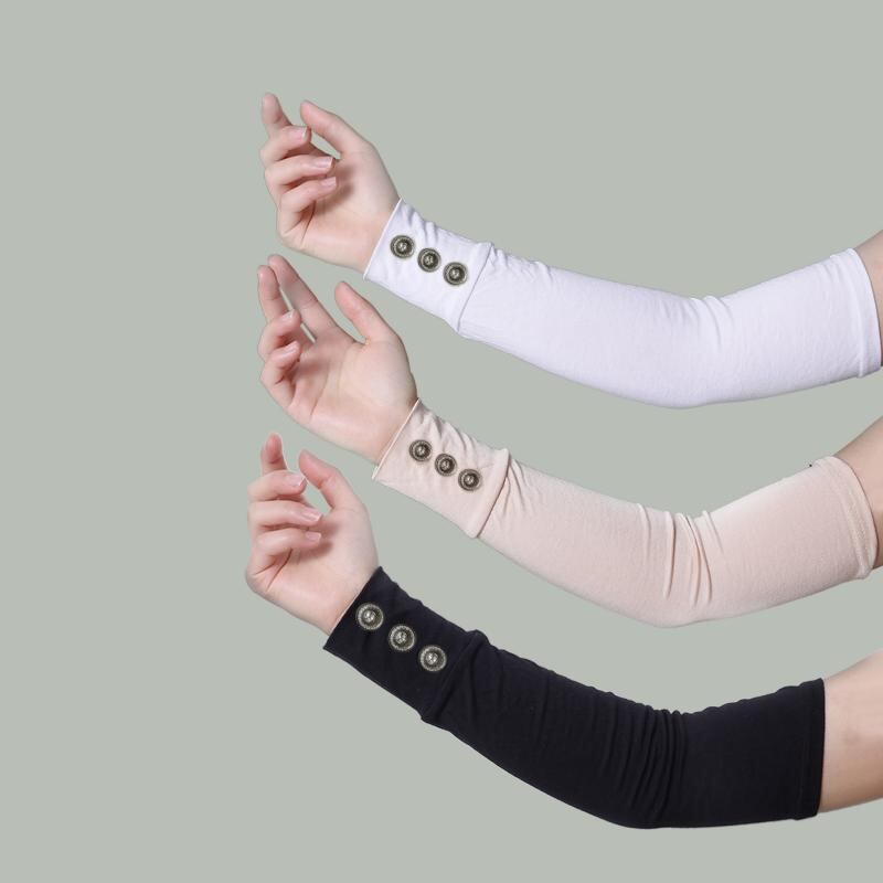 アームカバー レディース 女性用 アームスリーブ 綿 コットン UV対策 日焼け対策 防寒 保温 伸縮性 ロング丈 無地 ブラック ホワイト ベージュ オールシーズン フリーサイズ