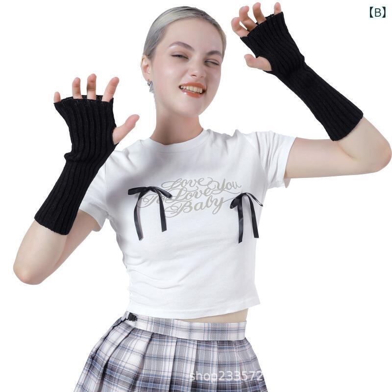 手袋 男女兼用 ユニセックス 秋冬 ニット ロング アームウォーマー 指なし 防寒 保温 暖かい 付け袖 ポリエステル フリーサイズ 普段使い アウトドア カジュアル 冷え対策 長丈 ファッション