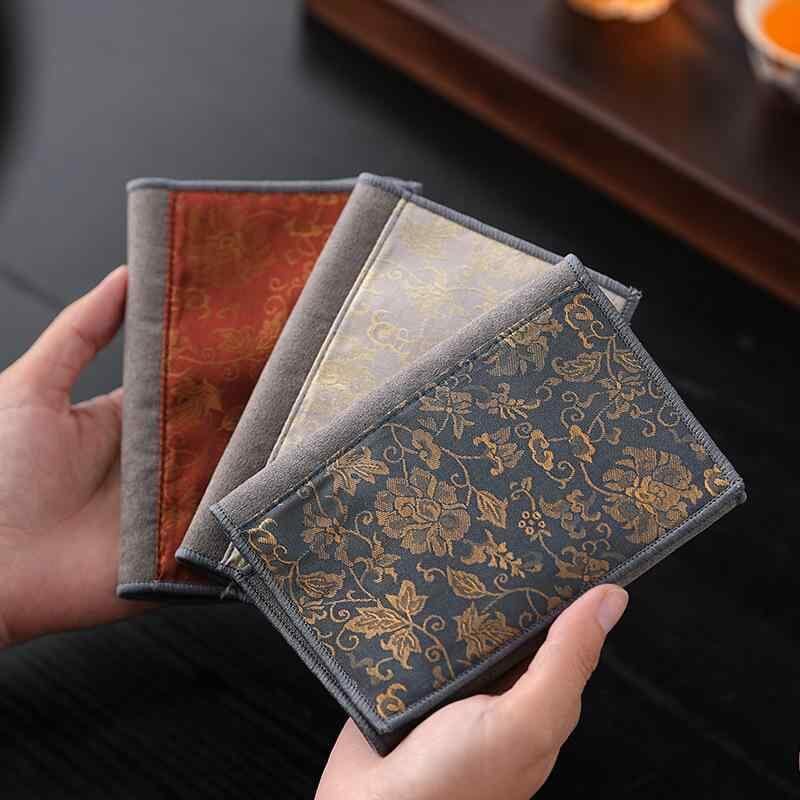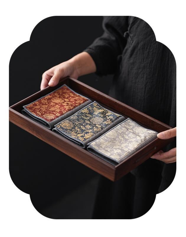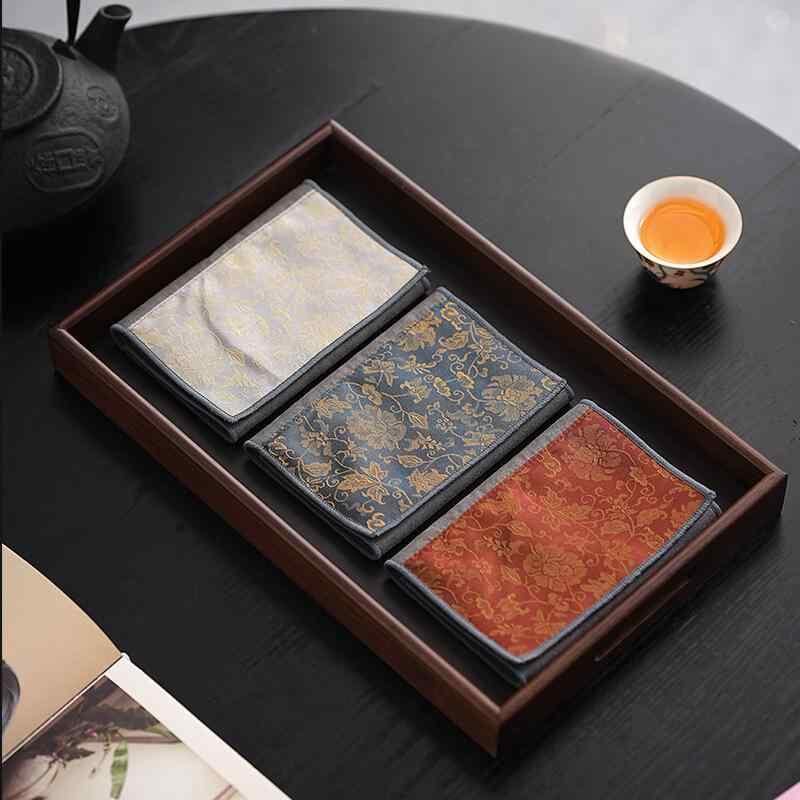 茶巾 唐草模様 禅モダン 和風 吸水 厚手 大判 混紡素材 ティーマット テーブルクロス 敷物 高級感 中国茶 茶器 茶道具 インテリア お洒落 オフホワイト 赤 青