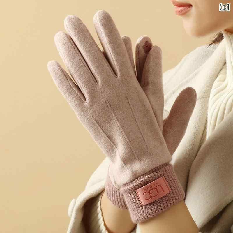 手袋 グローブ 男女兼用 フェイクカシミヤ カシミヤタッチ 秋冬 保温 防寒 あったか 裏起毛 厚手 指あり アウトドア サイクリング バイク タッチパネル対応 スマホ対応 普段使い 通勤 通学 レジャー ブラック グレー ピンク アイボリー