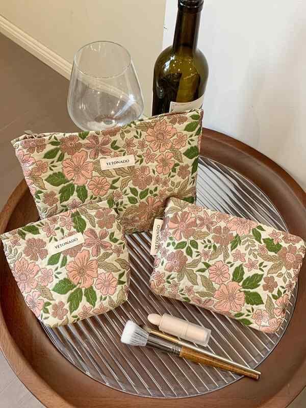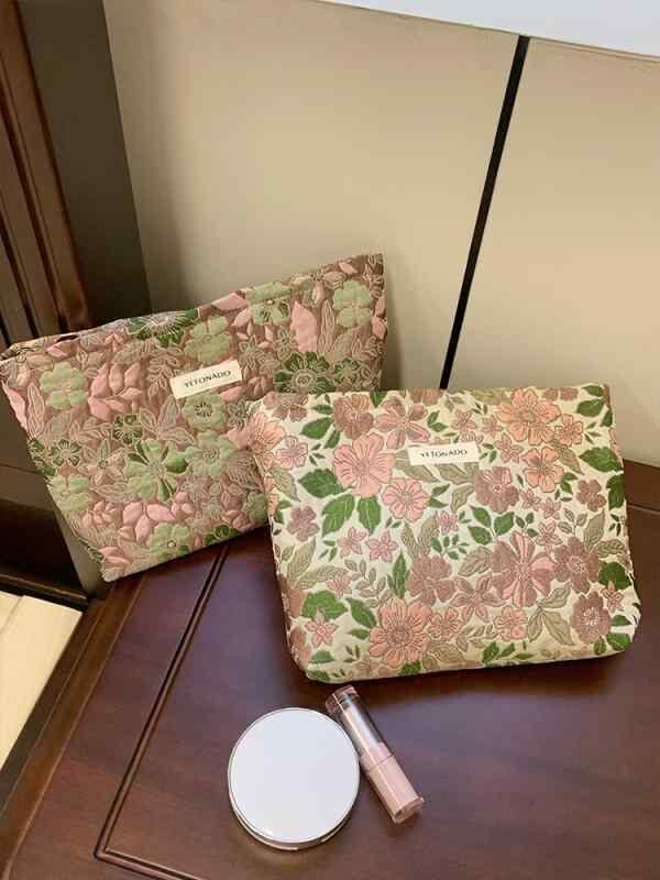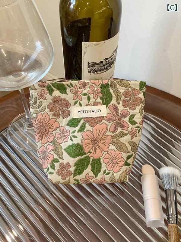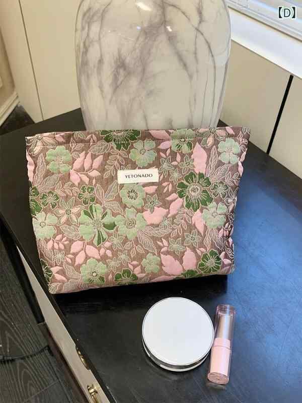 化粧ポーチ レディース レトロ カントリー調 小花柄 大容量 収納 携帯用 日常使い トラベル インナーバッグ クラッチ ポリエステル 刺繍 花モチーフ 配色デザイン 高級感 かわいい