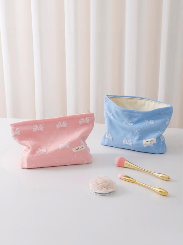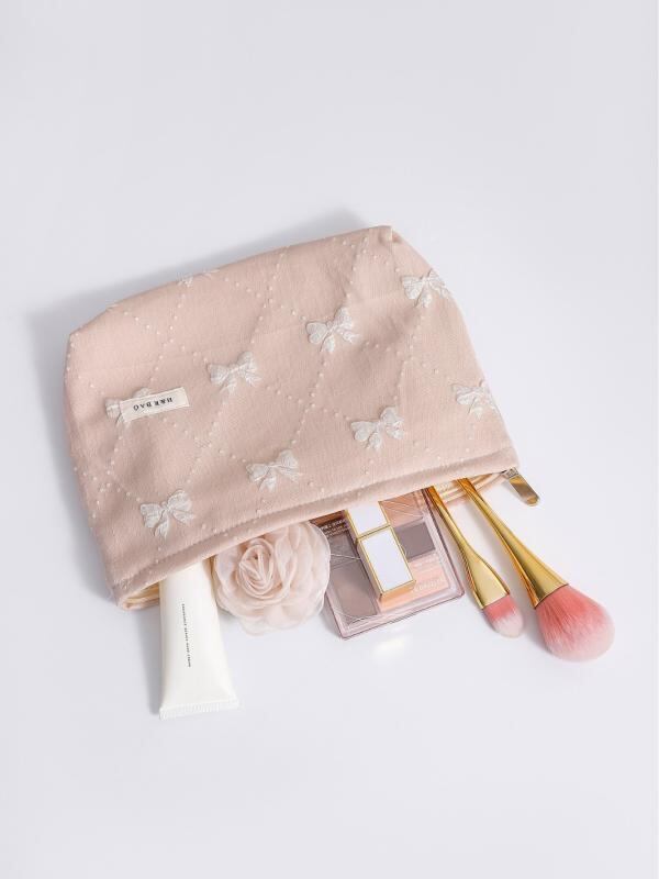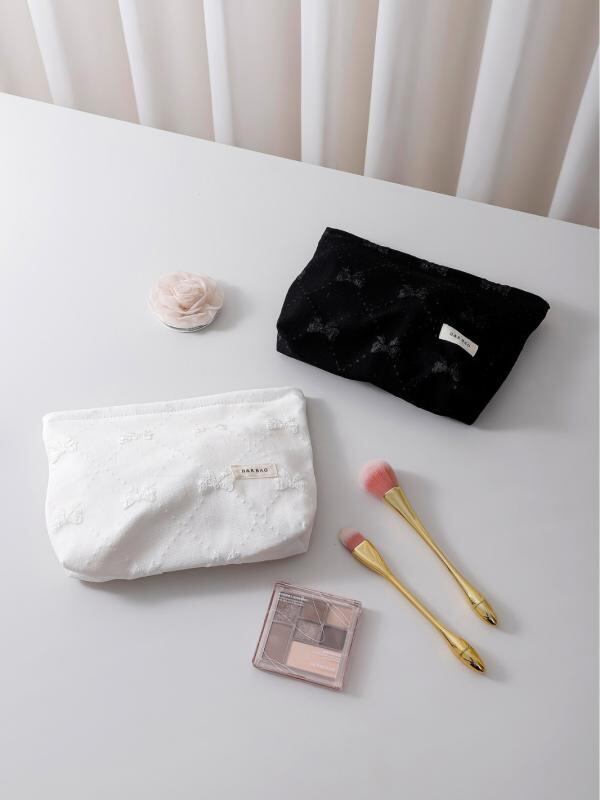 ポーチ レディース 女性用 コスメ メイク クラッチ ハンドバッグ 旅行 スキンケア 洗面 小物整理 大容量 携帯 ポータブル エンボス リボン 蝶結び