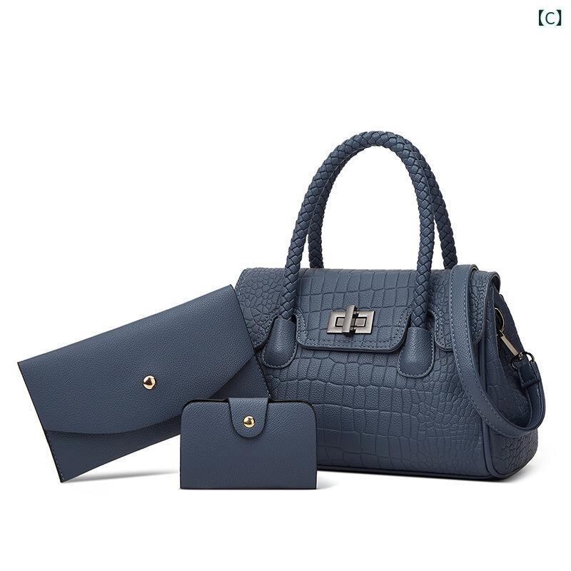 ハンドバッグ レディース ソフトPUレザー クロコ型押し トート ショルダー 斜め掛け マルチセット 横型 スクエア 高級感 デイリーユース 通勤 通学 鞄