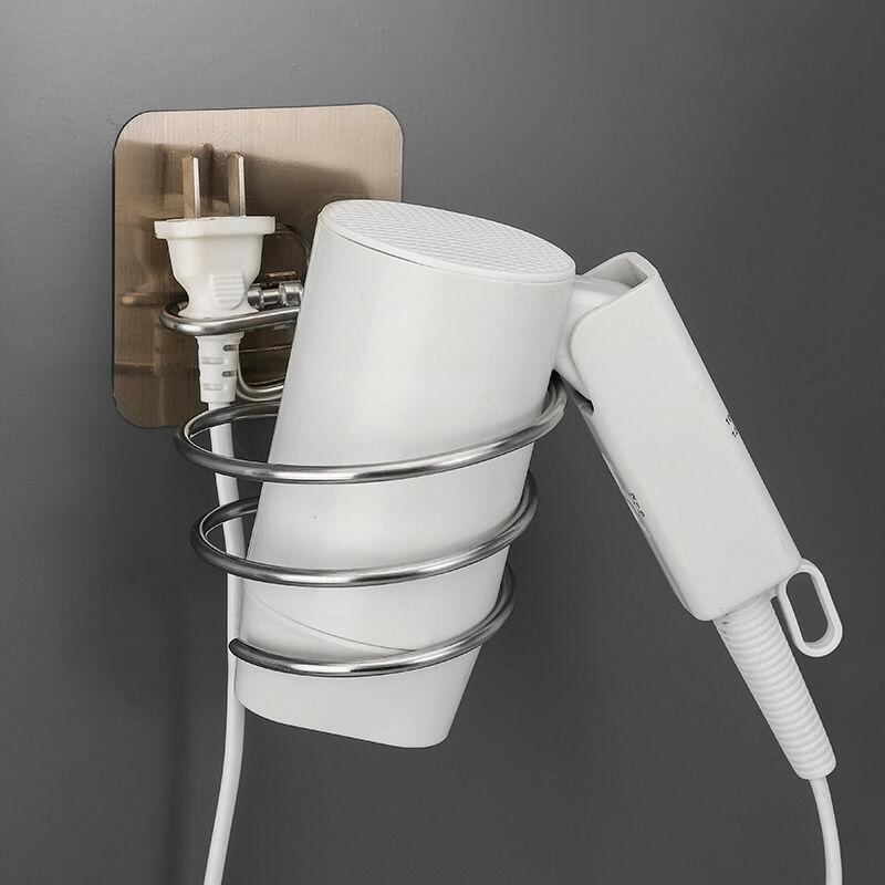 ヘアドライヤーホルダー 穴あけ不要 貼り付け式 ステンレス製 浴室 洗面所 トイレ 壁掛け 収納ラック スタンド 強力粘着 省スペース 耐荷重 サビにくい