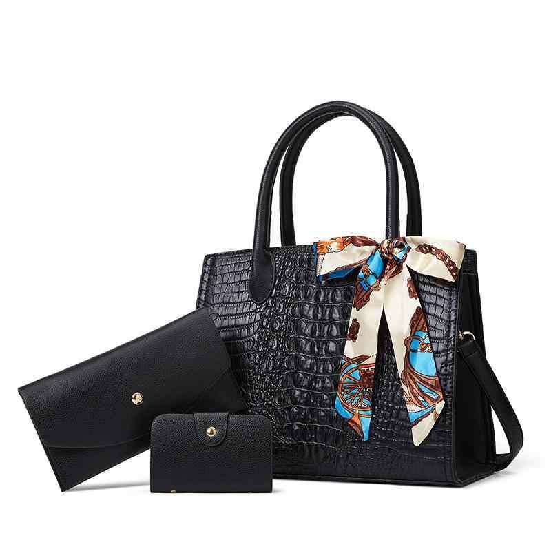 バッグ レディース クロコダイル柄 親子バッグ 3点セット ハンドバッグ ショルダーバッグ 斜め掛け PUレザー 横型 スクエア型 ファスナー開閉 日常使い 普段使い 多収納
