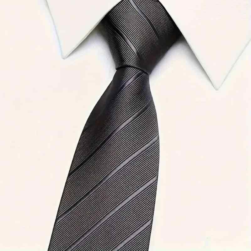 ネクタイ 男女兼用 ビジネス フォーマル 結婚式 ウェディング 冠婚葬祭 ナロータイ ストライプ柄 黒 ポリエステル 上品 スタイリッシュ 春夏