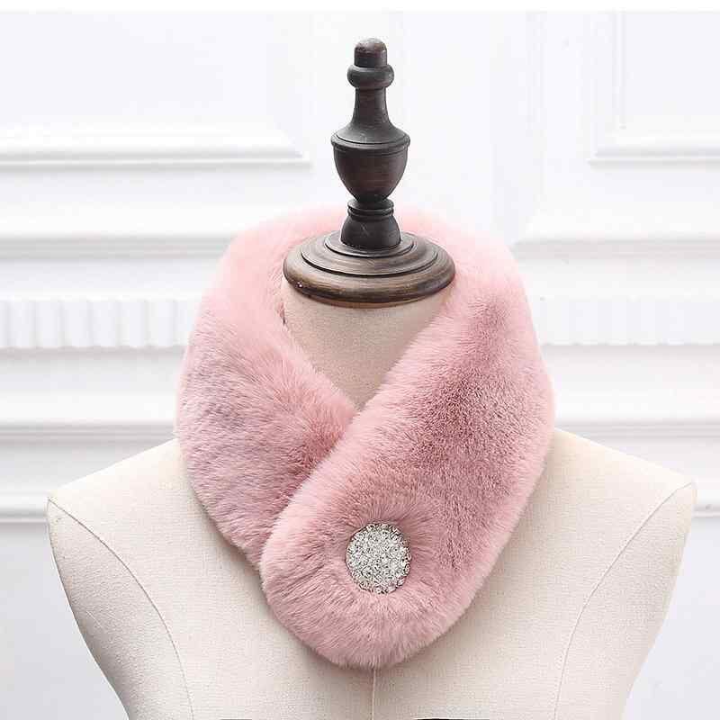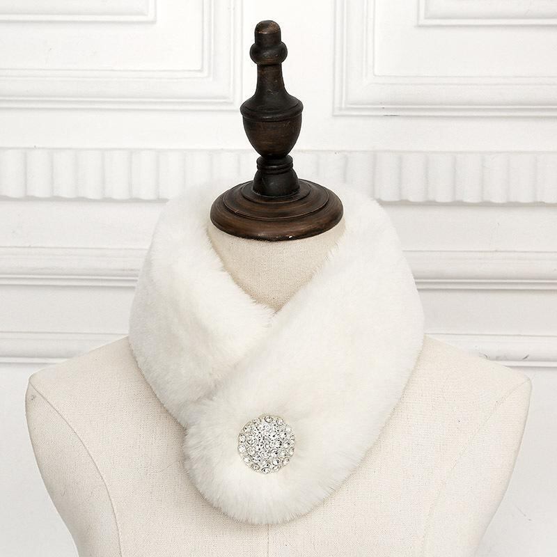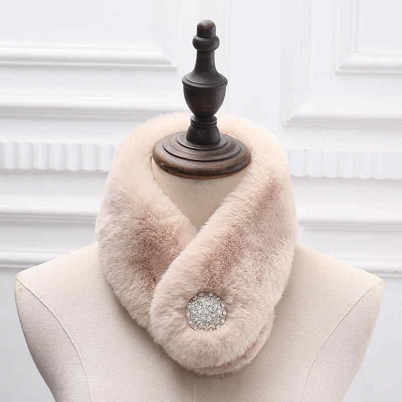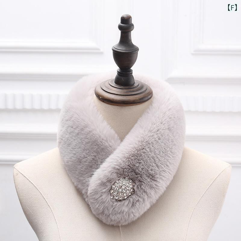 マフラー レディース 韓国風 レッキスラビット風 エコファー 両面 ラインストーン ネックウォーマー スヌード 厚手 あったか 防寒 秋冬 普段使い ブラック ホワイト ベージュ