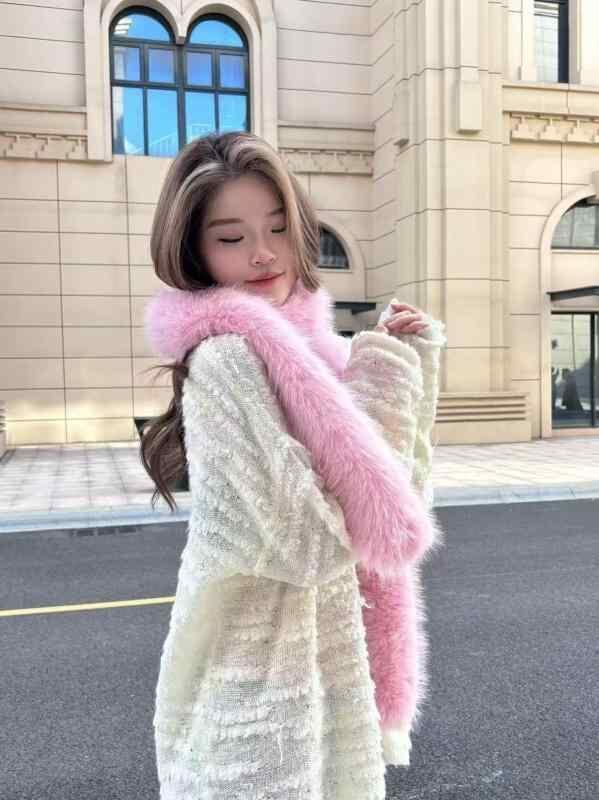 ・主な素材: フェイクラビットファー・編み方: 横編み・加工技術: ジャカード、織り・タイプ: ミドル丈・スタイル: オールマッチ、シンプル・カテゴリ: ファッション通勤・機能: 保温・流行要素: 線・流行要素カテゴリ: 幾何学模様・カラー展開: ホワイト、グレー、ブラック、オフホワイト、カーキ、ピンク