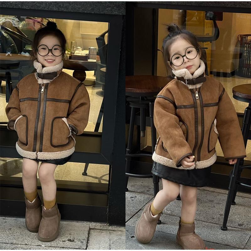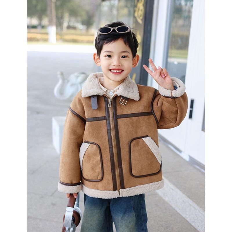 ジャケット キッズ 男の子 スエード調 裏ボア 厚手 防寒 おしゃれ カジュアル アウター 秋冬 フルジップ 襟付き ダークブラウン