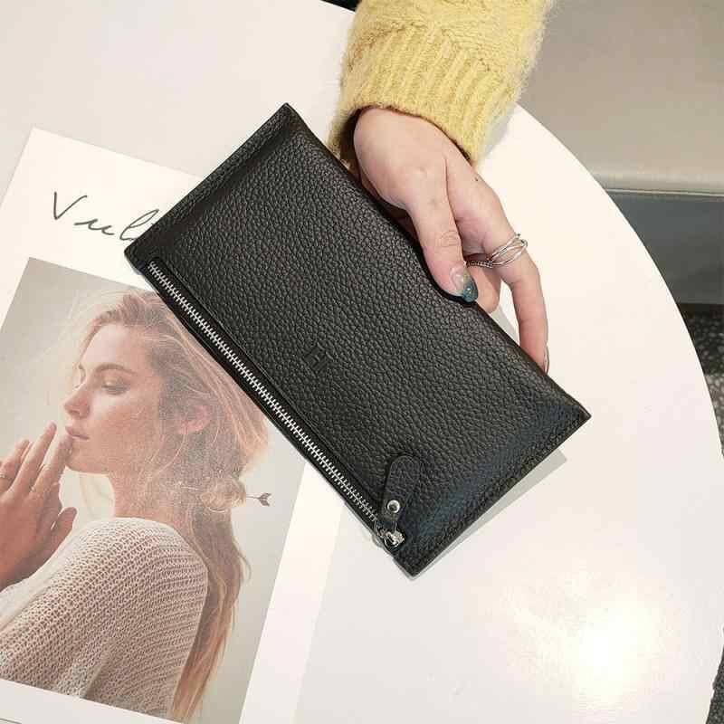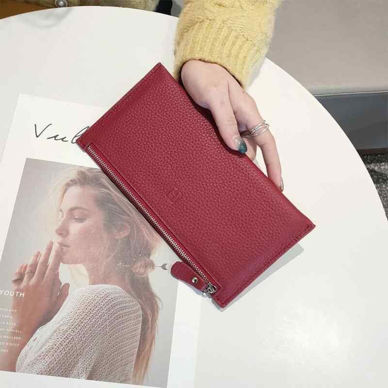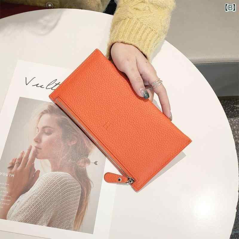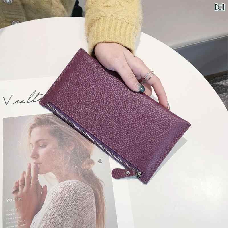 財布 レディース 長財布 ロングウォレット スマホ収納 ファスナー カード入れ 極薄 スリム シンプル おしゃれ カジュアル レトロ調 デイリーユース 普段使い 軽量 大容量 合成皮革 無地 黒 オレンジ 紫 ワインレッド