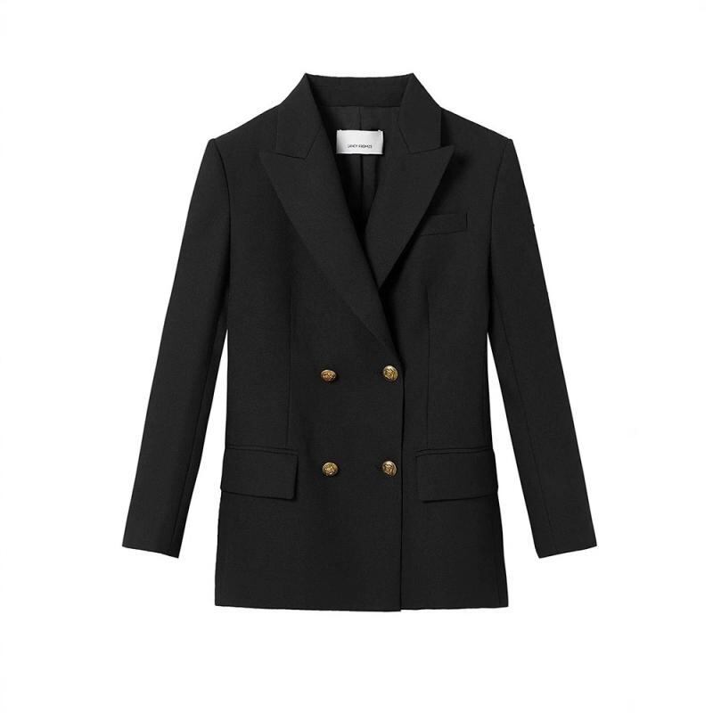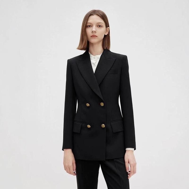 テーラードジャケット レディース ダブルブレスト 長袖 スリムフィット ポリエステル 防シワ加工 ブラック 高級感 ビジネス フォーマル オフィスカジュアル エレガント 上品 春夏