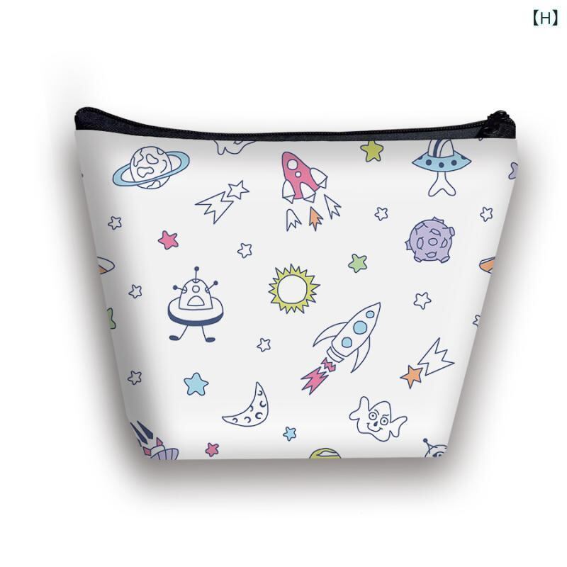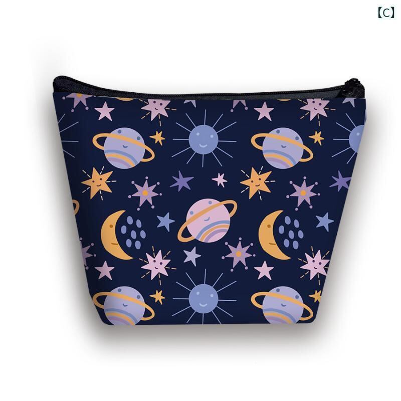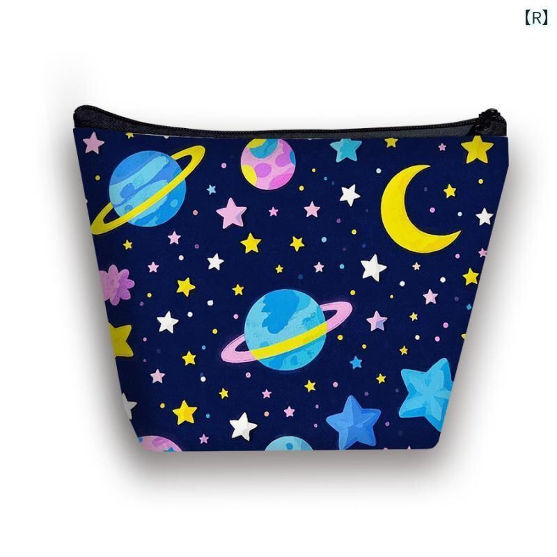 ポーチ キッズ 女の子 宇宙柄 惑星柄 プリント トラベル 洗面用具 コスメ 収納 整理 マルチ 小物入れ おしゃれ かわいい シンプル 軽量 通気性 抗菌 ポリエステル