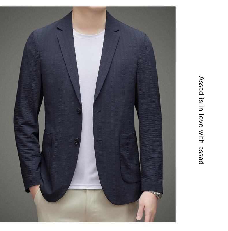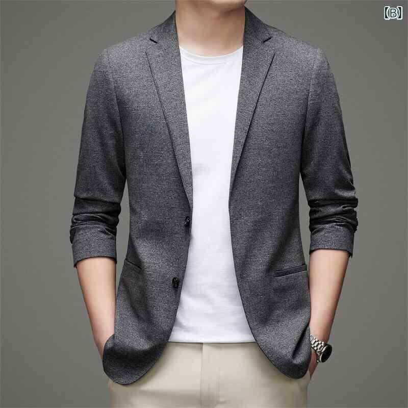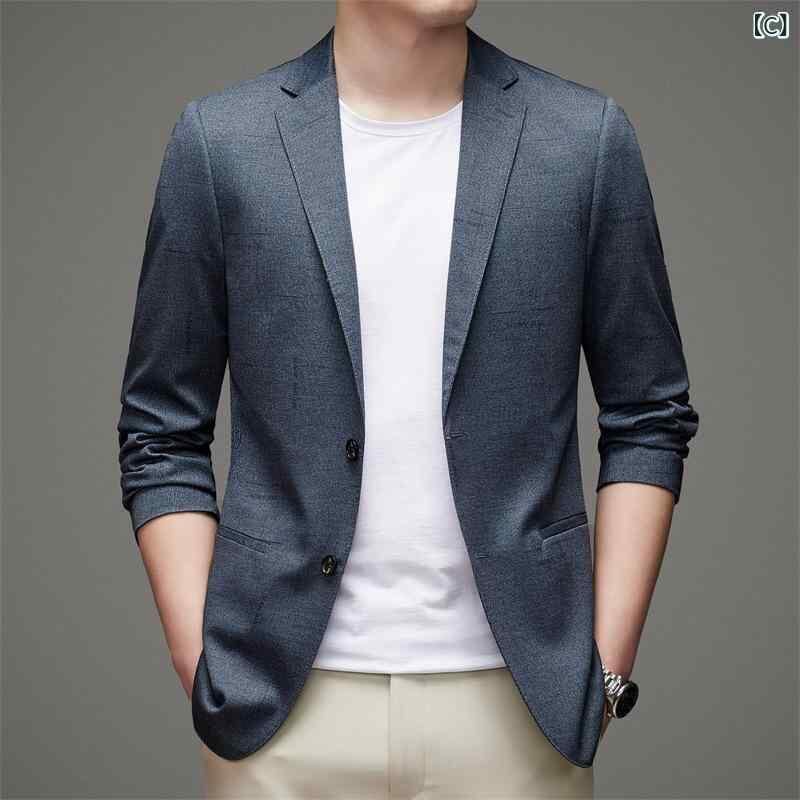ジャケット メンズ 中年 紳士 春秋 ビジネス カジュアル オフィス デイリーユース 高級感 高品質 形態安定 ノーアイロン スリムフィット 細身 スタイリッシュ 耐久性 無地 長袖 シングル 2つボタン ノッチドラペル