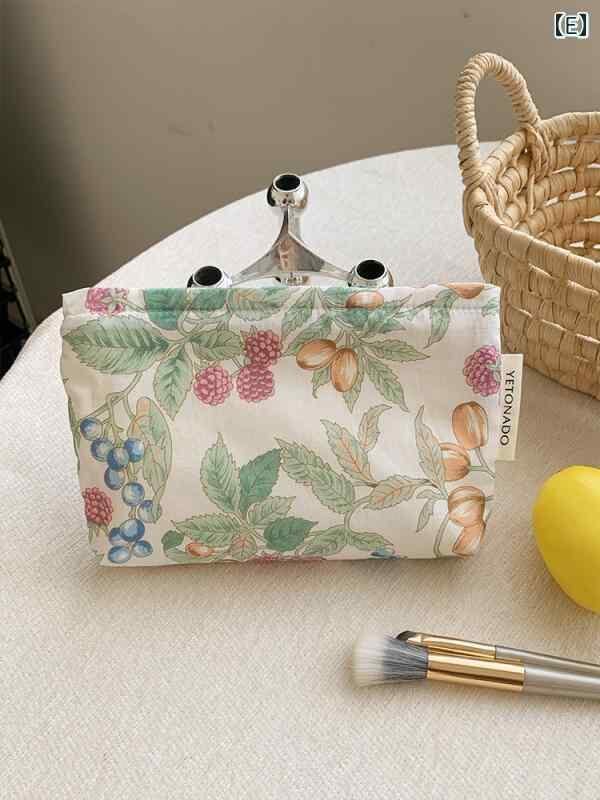ポーチ レディース 小花柄 コットン 大容量 スクエア型 ファスナー付き コスメポーチ メイクポーチ クラッチバッグ バッグインバッグ 小物入れ さわやか 春夏