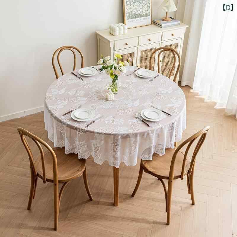テーブルクロス トリコット レース 透かし編み アメリカン カントリースタイル 食卓カバー ポリエステル製 ホワイト 花柄デザイン ダイニング リビング装飾用 円形 長方形 正方形 各種サイズ