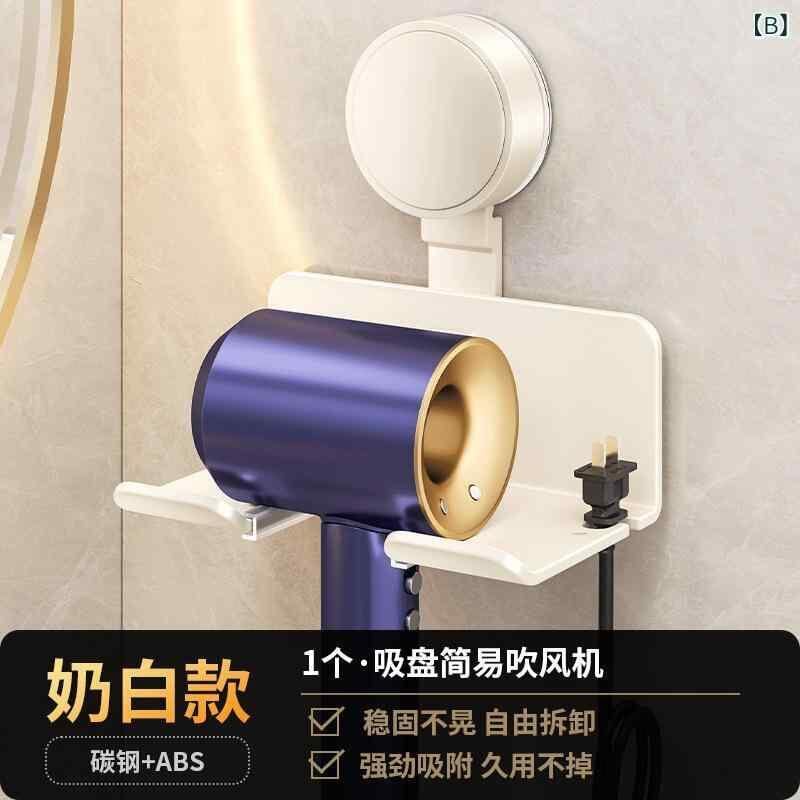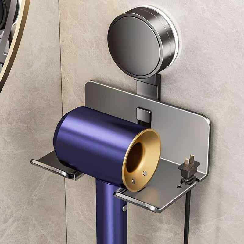 ドライヤーホルダー 穴開け不要 吸盤 ヘアドライヤーラック 洗面所 浴室 壁掛け収納 強力吸着 賃貸OK ウォールラック プラスチック アルミ製 モダン スタイリッシュ ガンメタルグレー クリームホワイト