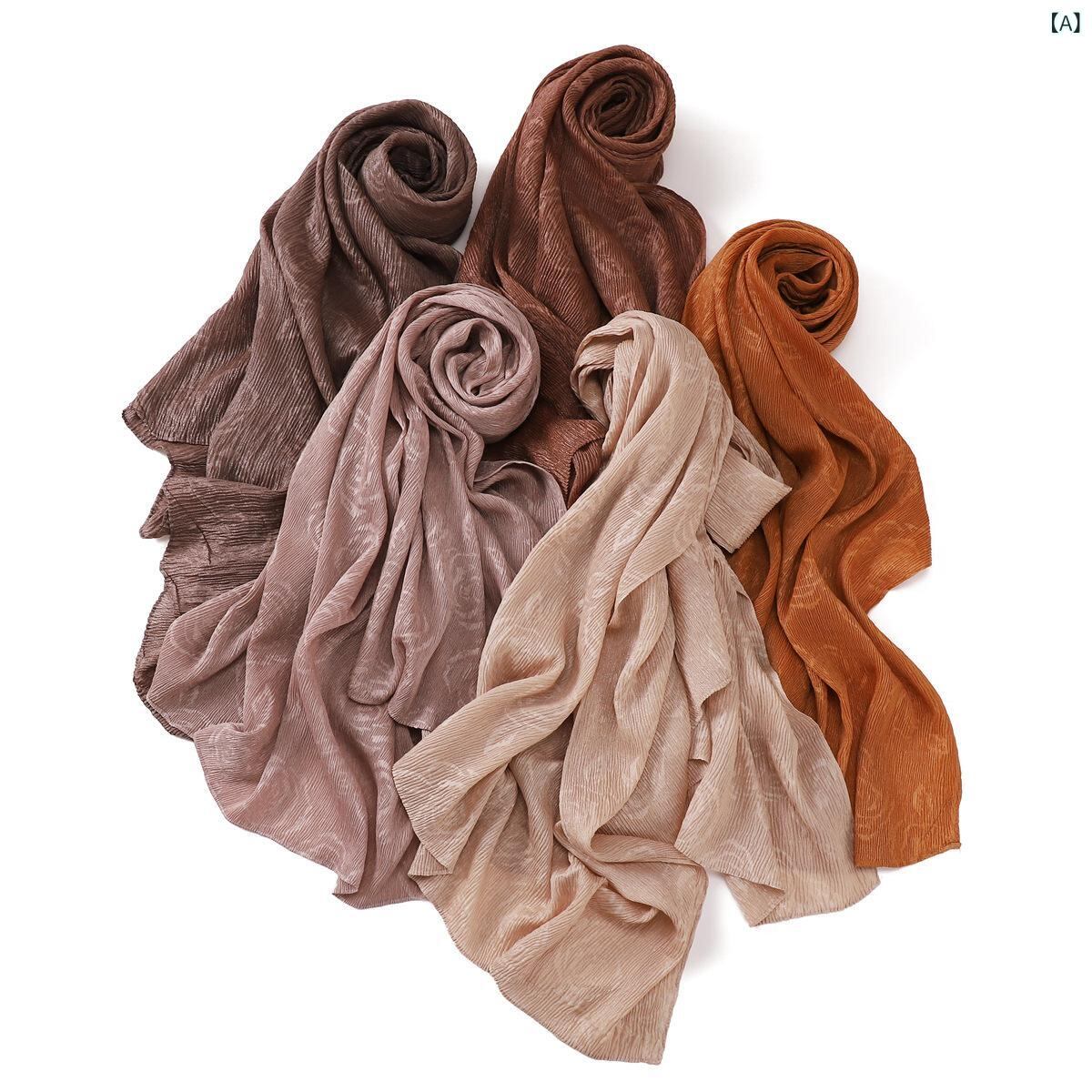 ストール 無地 きらめき プリーツ加工 ローズ柄エンボス 薄手 通気性 ポリエステル ショール スカーフ ヘッドスカーフ 旅行用 普段使い UV対策 オールシーズン 高級感