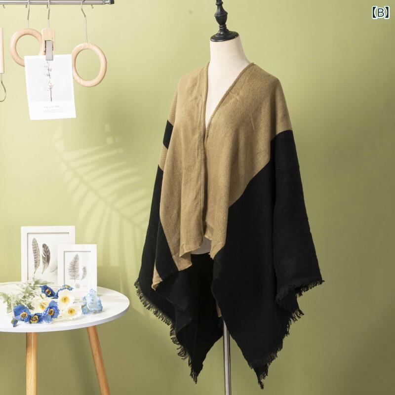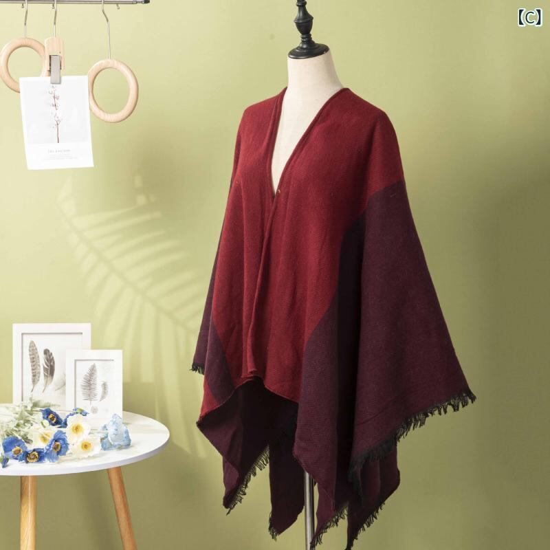 ポンチョ 男女兼用 民族風 レトロ エスニック 切り替え ストライプ柄 マルチカラー 高級感 旅行 トラベル 羽織り ショール ストール ケープ アウター 着回し 万能 保温 防寒 冷房対策 ポリエステル アクリル 混合素材