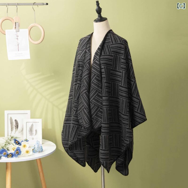 ショール ユニセックス 男女兼用 秋冬 欧米風 ファッション 幾何学模様 厚手 大判 レトロ エスニック ポリエステル アクリル 保温 防寒 ストール