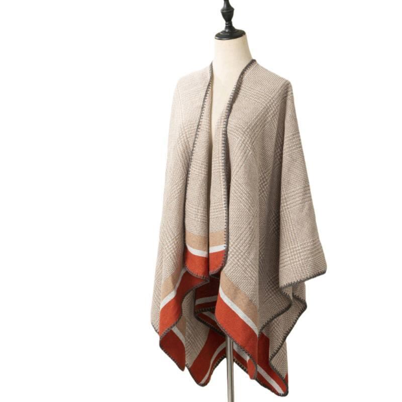 ショール ポンチョ レディース 千鳥格子柄 スリット 厚手 防寒 保温 オフィス 普段使い マフラー ストール ケープ 秋冬 ポリエステル アクリル 混紡 レトロ クラシック
