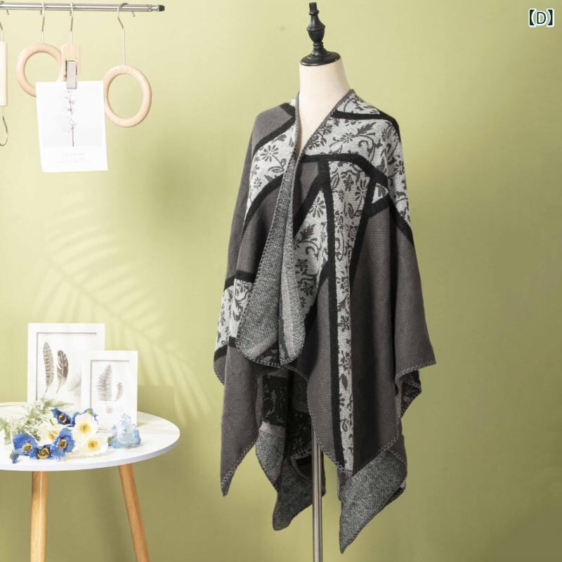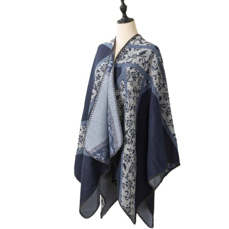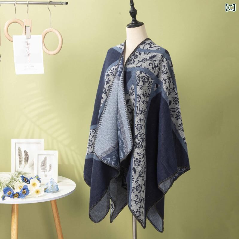 ショール ユニセックス 秋冬 欧米風 ストライプ 花柄 厚手 大判 保温 防寒 多用途 マフラー ストール レトロ エスニック ファッション ポリエステル アクリル混紡