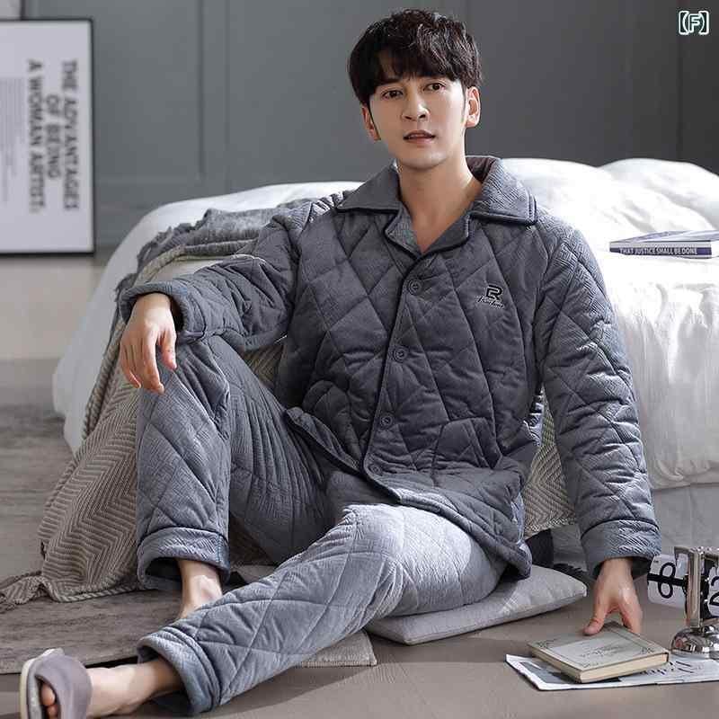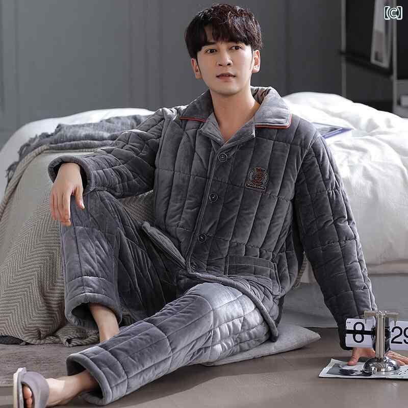 ルームウェア メンズ サンゴフリース 三層中綿キルティング 裏起毛 極厚 保温 防寒 スタンドカラー ゆったり 上下セット 長袖 長ズボン 冬用 部屋着 パジャマ