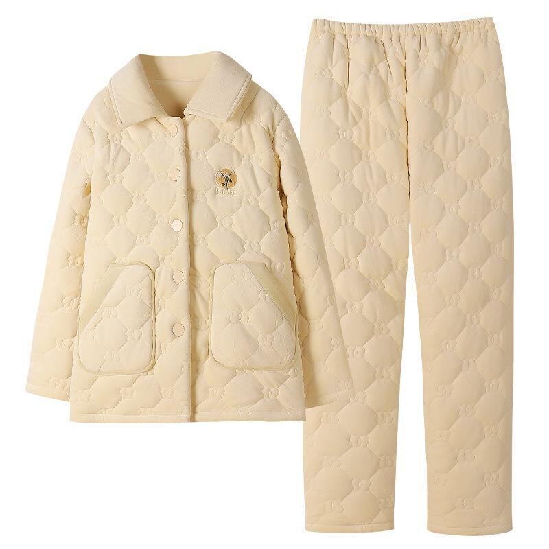 パジャマ レディース 女性用 三層中綿入り サンゴフリース あったか 厚手 保温 防寒 静電気防止 秋冬 ルームウェア 部屋着 上下セット