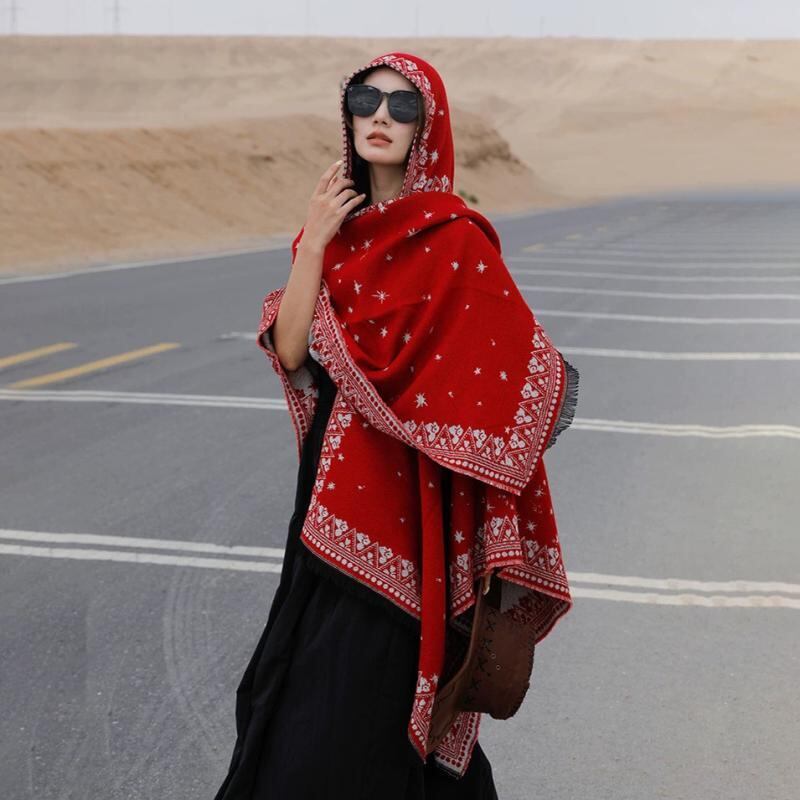 ショール レディース クリスマス 雪柄 スノーフレーク柄 ポンチョ ケープ 秋冬 厚手 保温 防寒 あったか かわいい スイート シンプル ポリエステル アクリル 混