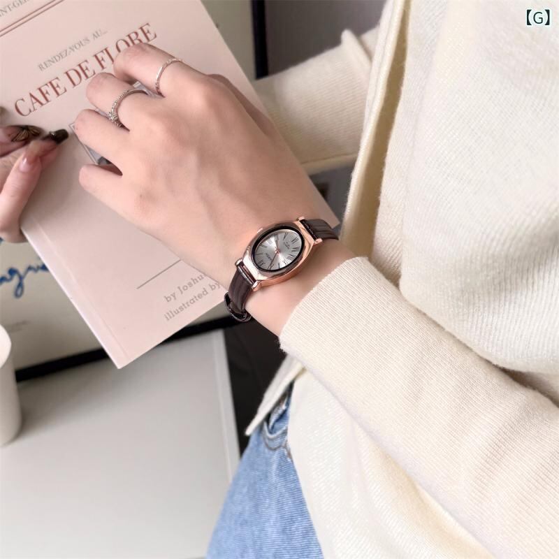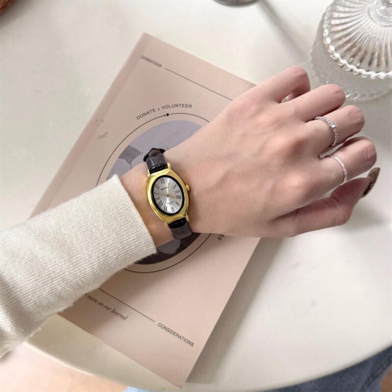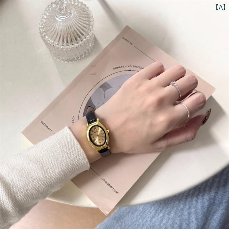 腕時計 レディース クォーツ レトロ ヴィンテージ風 アンティーク調 ローマ数字 オーバル型 ゴールドフレーム 革ベルト アナログ ファッション 小物 薄型 エレガント おしゃれ