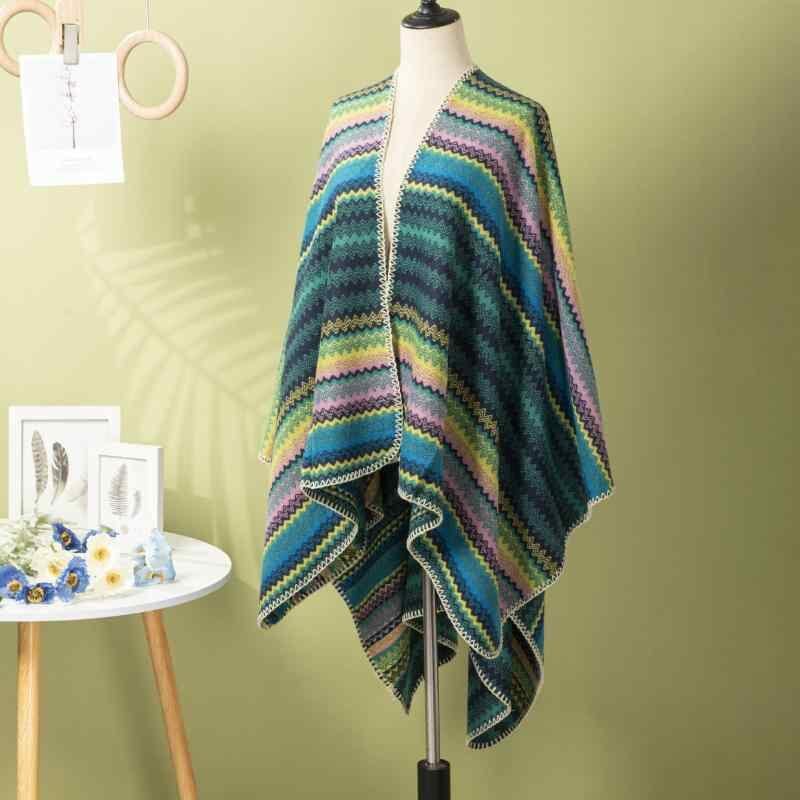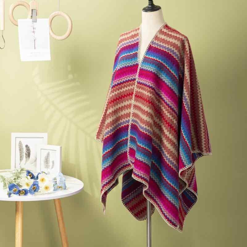 ショール ユニセックス トラベル 旅行 カジュアル ファッション トレンド ケープ ポンチョ ストール 羽織り 通気性 快適 ウェーブ柄 幾何学柄 厚手 保温 ポリエステル アクリル レトロ エスニック