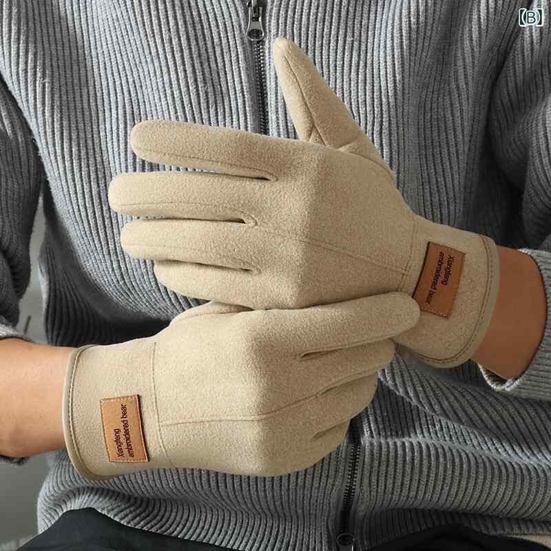 手袋 メンズ 五本指 グローブ 徳絨 フリース 裏起毛 厚手 防寒 保温 防風 スマホ対応 タッチパネル対応 アウトドア サイクリング バイク 自転車 運転 ドライブ 普段使い 冷え対策 秋冬用 ブラック カーキ グレー