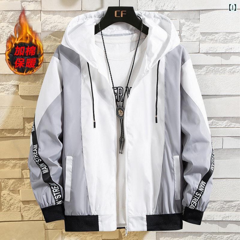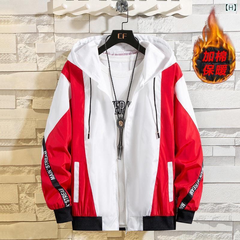 ジャケット メンズ 春秋 アウター 男性用 ゆったり ビッグシルエット フード付き カジュアル 厚手 中綿入り ポリエステル ブラック レッド グレー カモフラージュ トレンド 切り替えデザイン