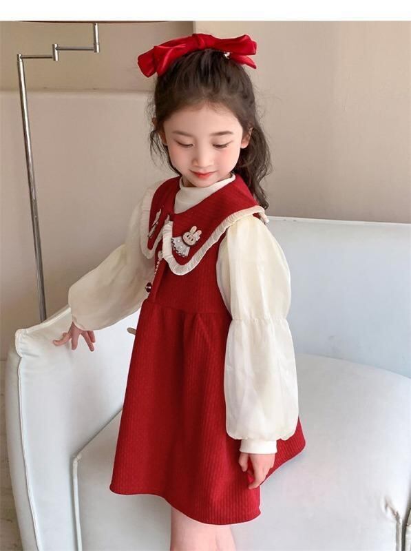 ワンピース 女の子 女児 小学生 秋冬 セットアップ 2点セット ティアードスカート プリンセス風 かわいい 長袖 フォーマル お正月 お祝い 発表会 セレモニー ポリエステル