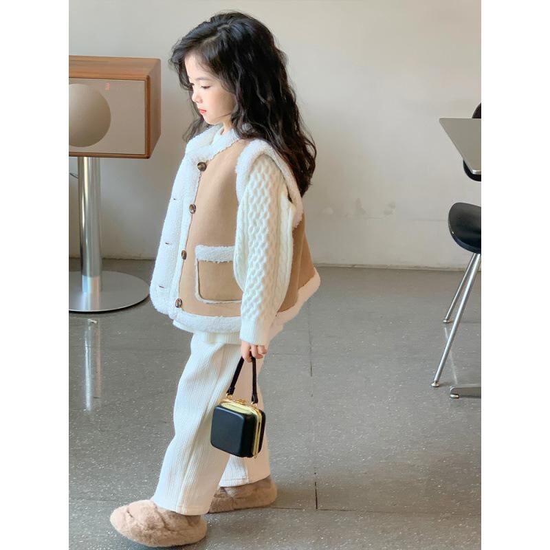 キッズ 女の子 秋冬 厚手 暖かい 長袖 セーター ニット ベスト ジレ セットアップ 3点セット 長ズボン 普段使い 通園 通学 お出かけ カジュアル かわいい