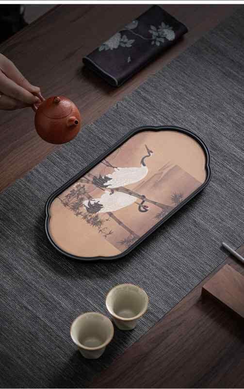 茶盤 吸水干泡茶盤 メラミン製 海棠デザイン 小型 コンパクト 家庭用 レトロモダン 新中式 茶道具 ティーポット置き 茶台