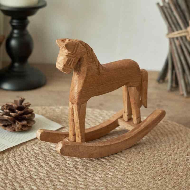 オブジェ ロッキングホース 北欧風 松材 天然木製 ハンドメイド 卓上飾り インテリア雑貨 リビング 寝室 玄関 かわいい おしゃれ 開運 成功祈願 縁起物